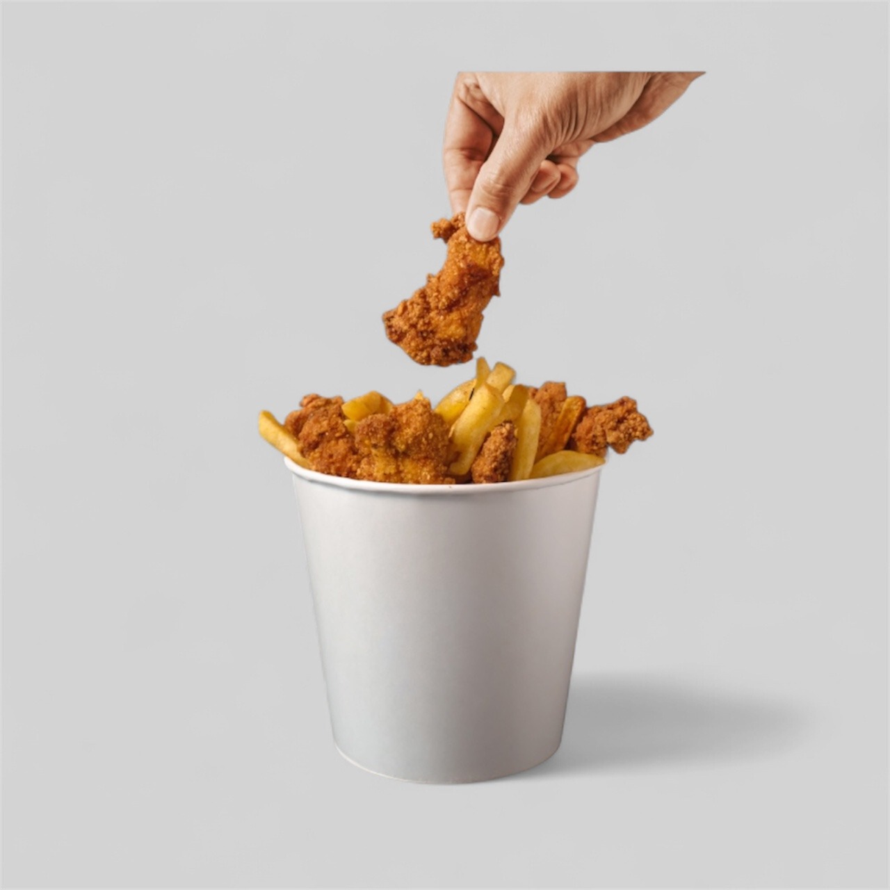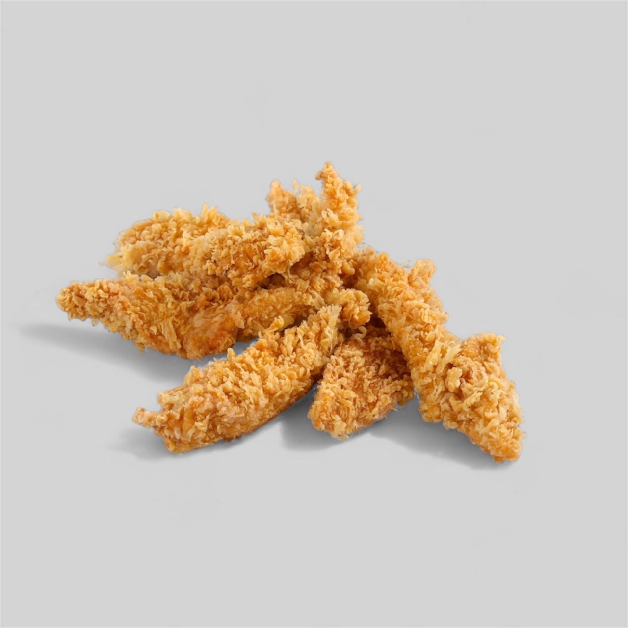 stripsy, ser panierowany, boczek, cebulka prażona, sałata, majonez, sos miodowo-musztardowy